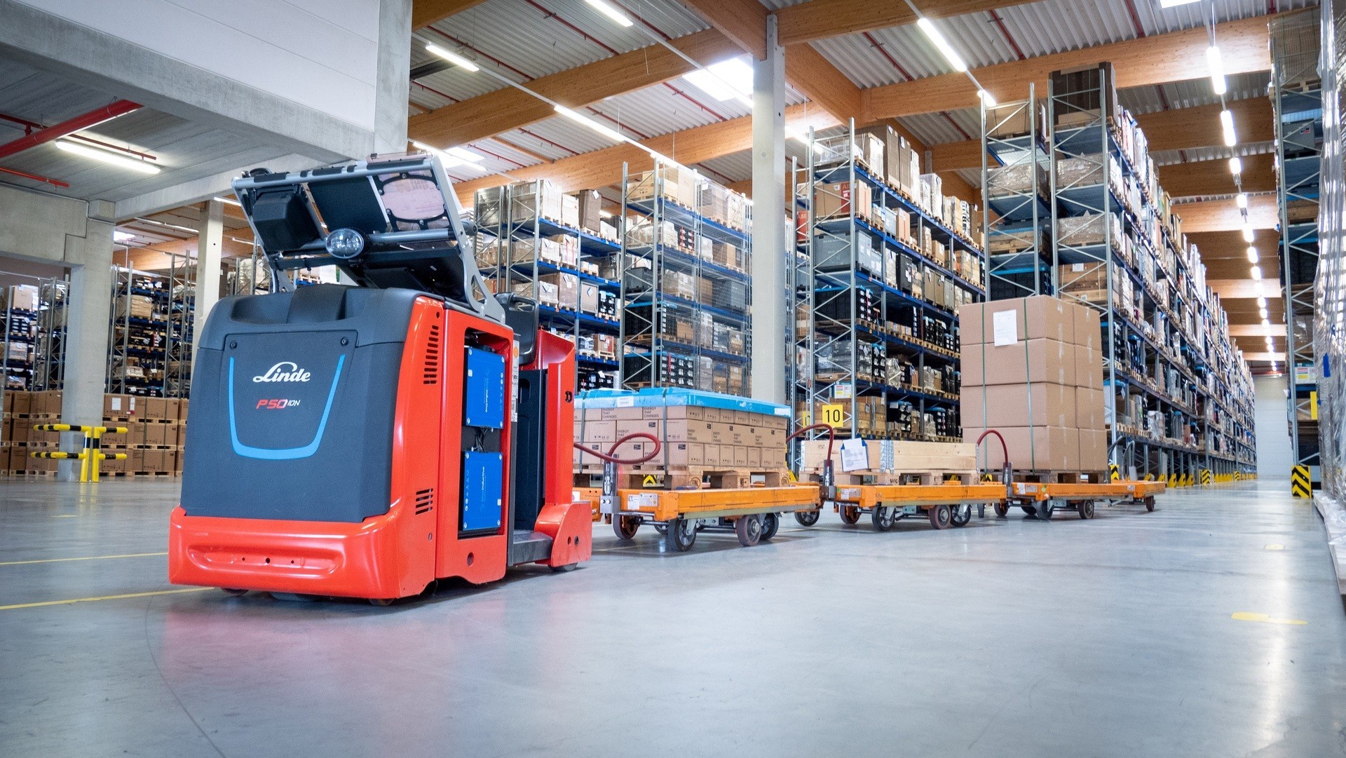 La ventaja de los trenes remolcadores en comparación con las carretillas elevadoras es que se multiplica la productividad. Al estar automatizados, cubren todas las estaciones del flujo de mercancías y ahorrando así desplazamientos innecesarios al almacén.