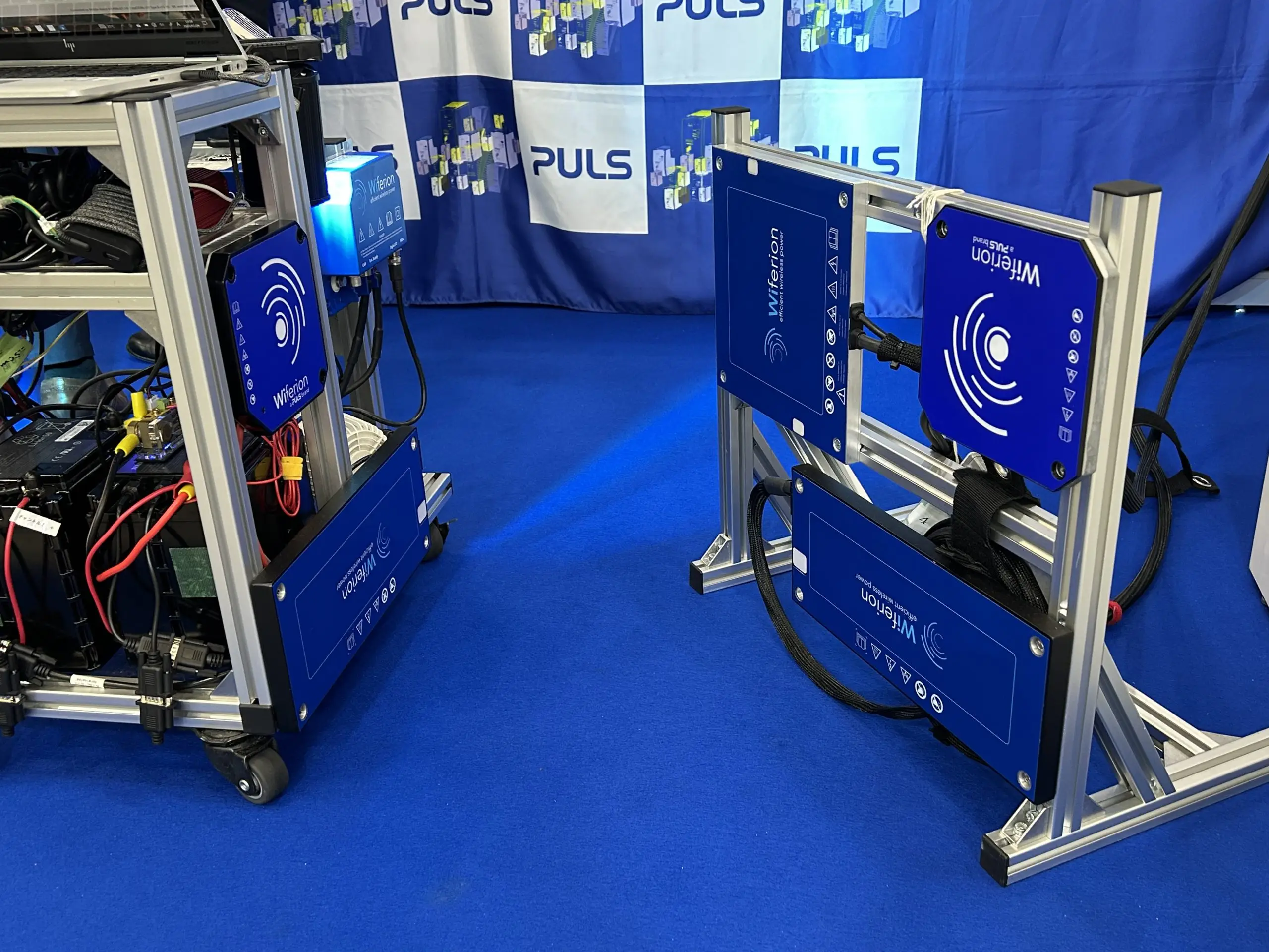 会場ではWiferionのブースにて、PULSの自律走行搬送車(AGV)や自律移動ロボット(AMR)向けの高効率ワイヤレス充電システムのライブデモンストレーションを実施しました。さらに、etaLINK3000(3kW)や新製品のCW1000(1.25kW)などを展示し、Wiferionの技術が充電の中断を解消し、自動化されたスムーズな運用を可能にする仕組みや、日本の物流業界が直面する人手不足に対応する実用的なソリューションを紹介しました。